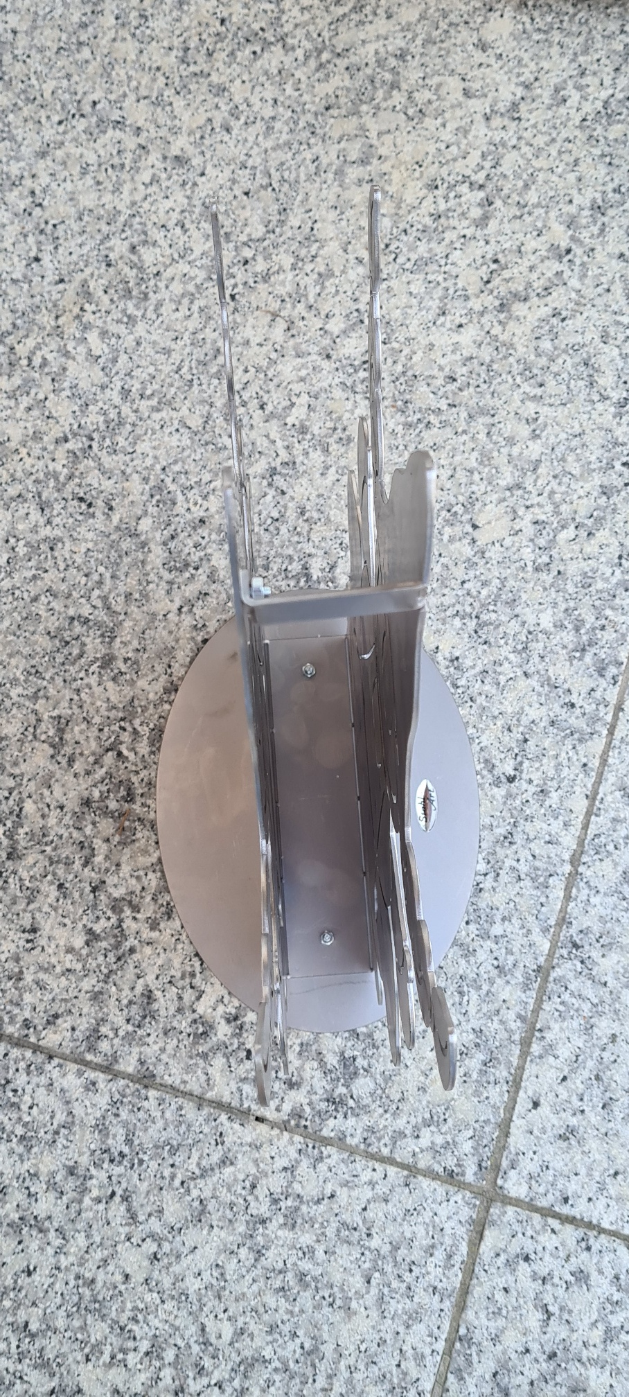 Kathi besteht aus 2 mm Stahlblech, die mit hilfe von Zitronensäure schnell von selber rostet.